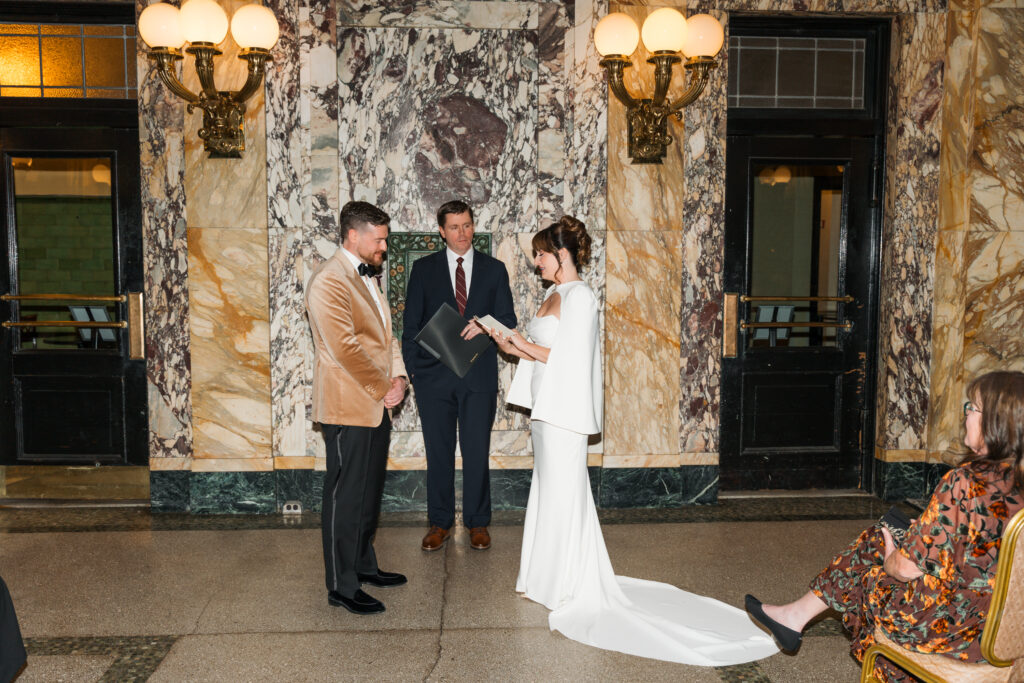 Hayley and Gerard’s wedding day unfolded inside the historic Radisson Lackawanna Station Hotel, setting the tone for a romantic, candlelit November celebration. With rich textures, antique details, and a couple fully present with one another, the day felt like a dark academia love story brought to life.